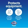 Clorox Pool&Spa Scale, Metal and Stain Control protects your swimming pool and equipment from metal stains and scale formation. Use this liquid product monthly to prevent scale in your swimming pool and equipment. Great for salt pools and protecting salt cells. Our best solution for preventing and removing fresh metals stains, including iron and copper, and is highly recommended for treating hard water pools. To prevent or treat scale or metal stains, use a half a quart of Scale, Metal, and Stain Control per 10,000 gallons of water monthly. If you pool is prone to metal stains and scale formation, apply a preventative dose every week as part of your regular maintenance routine.