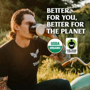 Death Wish Coffee Dark Roast Ground Coffee is sourced from the highest-quality, Fair Trade Certified, and USDA Certified Organic coffee beans in the world and roasted in the USA. With notes of dark chocolate and black cherry for any coffee lover, our Original Dark Roast Coffee serves a strong cup of coffee every time, getting you the caffeine you need without ever tasting bitter or acidic. Perfect for coffee brewing at home, this ground coffee can be brewed by the coffee cup or by the coffee pot with any coffee maker. Power to fuel even your busiest days.