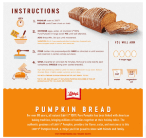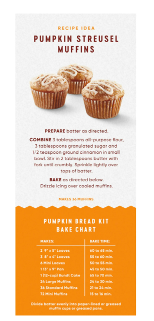 Kit includes 15oz Libby’s 100% Pure Pumpkin, pumpkin bread mix, and icing; just add eggs, oil, & water