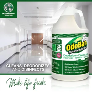 OdoBan Professional multi-purpose concentrate does the job of many products in one. Each of our one-gallon bottles of concentrate makes up to 32 gallons of cleaner. This one-gallon jug is great to have on hand to place anywhere in your business and also for refills when you need them. It’s an effective cleaner and sanitizer that leaves no residue, and works effortlessly to disinfect hard, nonporous household surfaces. It’s also an effective eliminator of harsh aromas and stenches including pet urine aftermath in carpet, upholstery, and more. It can even stand up to the smell of smoke and can be used in sinks, tubs, and for mopping floors and washing walls. Not only is it an exceptional cleaner, but it’s a great air freshener and will remove harsh smells from any room. It’s also a great way to refresh laundry and fabrics. OdoBan products can be used in both households and business facilities of all types including schools and day cares, hospitals, nursing homes, in ambulances, buses, and trains, in airplanes and taxis, in restaurants and cafeterias; pretty much any place where people commune. When used as directed, OdoBan is safe for use on washable surfaces, including sealed natural stone, stainless steel, ceramic, tile, Formica, fiberglass, rubber, vinyl, terrazzo, and plastic. Safe for use on sealed natural stone countertops and surfaces, like granite, quartz, marble, ceramic, and soapstone. Make Life Fresh with OdoBan.