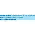 Ingredients: Popcorn, Palm Oil, Salt, Rosemary Extract (For Freshness), Sucralose.