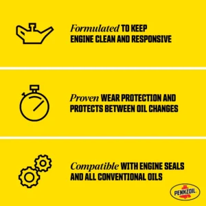 Pennzoil High Mileage 10W-30 Motor Oil is designed for engines with more than 75,000 miles, specially formulated to help stop leaks from seals and reduce the oil consumption that is typical of older, worn engines. Severe oil consumption and oil burn-off may also cause other issues, leaving deposits on the internal parts of your engine. Pennzoil High Mileage Motor Oil also helps prevent dirt and sludge from turning into performance-robbing deposits. Pennzoil High Mileage motor oil comes with a warranty coverage of up to 10 years or 300,000 miles*, whichever comes first. (*Pennzoil Motor Oil Lubrication Limited Warranty: Up to 10 years or 300,000 miles, whichever comes first, if you exclusively use Pennzoil motor oil, Pennzoil Professional motor oil, Pennzoil Gold Synthetic Blend motor oil, Pennzoil High Mileage motor oil, Pennzoil High Mileage Full Synthetic motor oil, or Pennzoil Full Synthetic motor oil. Your engine must have fewer than 125,000 miles and have been manufactured in the past 72 months. To maintain your warranty, change your vehicle’s oil and oil filter at least as often as recommended by the vehicle manufacturer. Enrollment required. Keep your receipts. Other conditions apply. See pennzoil.com/warranty to enroll and for full details and terms.)