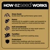 • Consists of a combination of high performance grass seed, mulch that expands to surround the seed, a soil amendment that helps repair areas burned by dog urine, tackifier to help keep seeds from washing away and a protectant to help keep seed safe