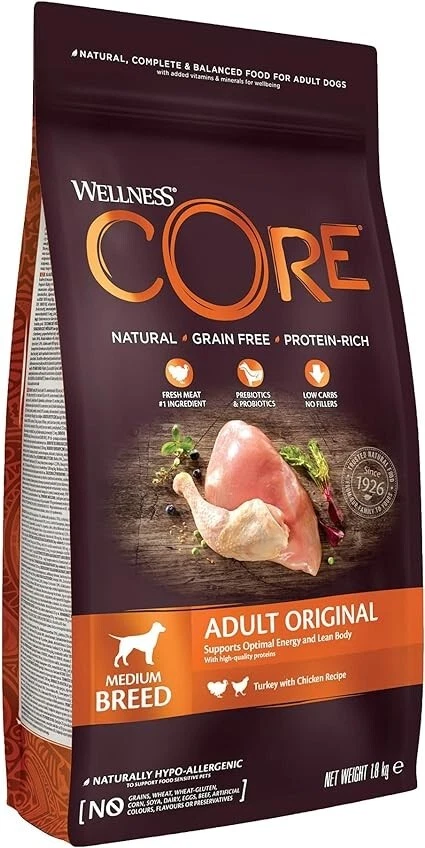 - HEALTHY DIGESTIVE SYSTEM: Our Wellness CORE Adult Original is easy to digest and contains prebiotic fibre and probiotics, providing your furry friend with a healthy digestive system!